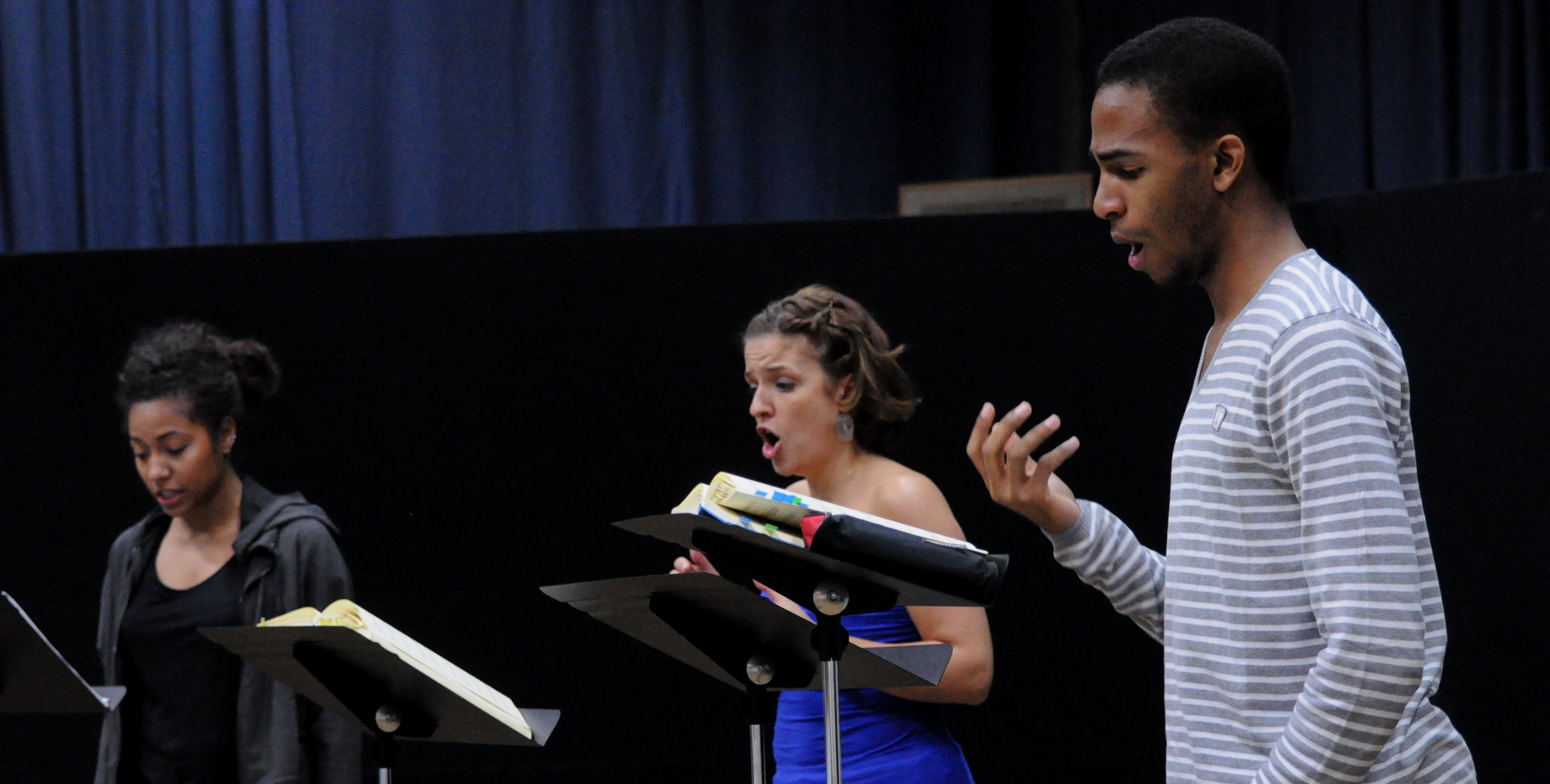 Yves Coudray, professeur de chant lyrique au CRD de Pantin et metteur en scène des Noces de Figaro, donne ses directives à ses élèves