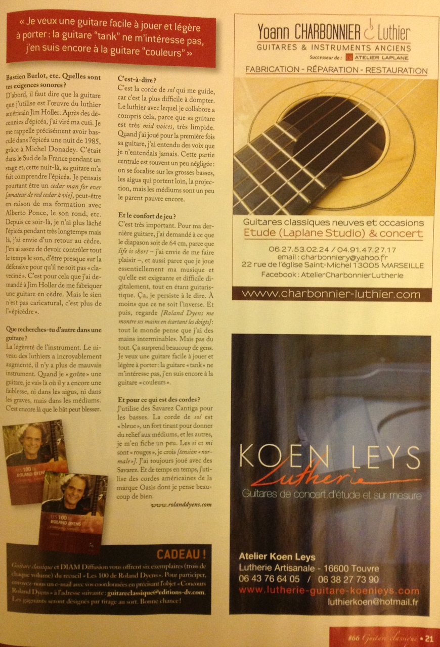 Le guitariste Roland DYENS, parrain de la Locomotive des Arts, en page de couv de Guitare classique !