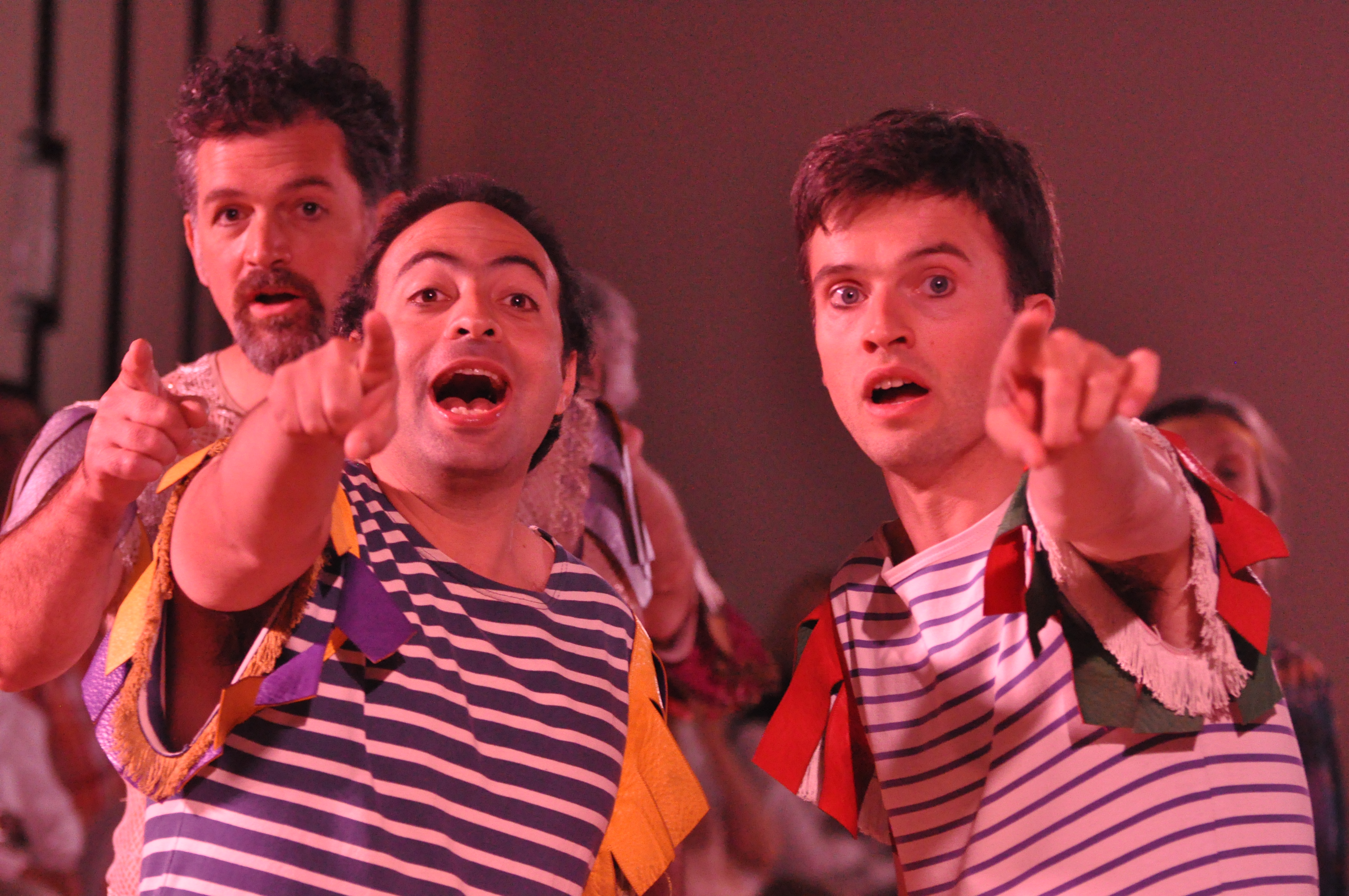 Extraordinaire trio avec Agamemnon, roi des rois (Franck Leguérinel), Ménélas roi de Sparte (Pierre Méchanick), et Calchas, Grand augure de Jupiter (Gilles Bugeaud)