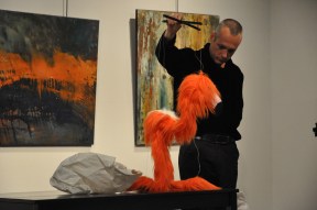 Cet atelier est animé par Dany Lefrançois et s’adresse aux enfants à partir de 6 ans, jusqu’aux adultes. Au cours de cet atelier interactif, Dany Lefrançois présente les différents types de marionnette et en explique les techniques de manipulation : marionnettes à fil, à tige (photo), à doigt, à gaine, à gueule etc…