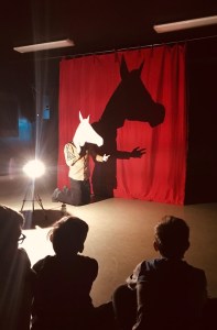 Dany Lefrançois propose un atelier d’une heure pour expliquer aux enfants la technique du Théâtre d’ombres et il n’y a rien de mieux que de pratiquer pour comprendre.