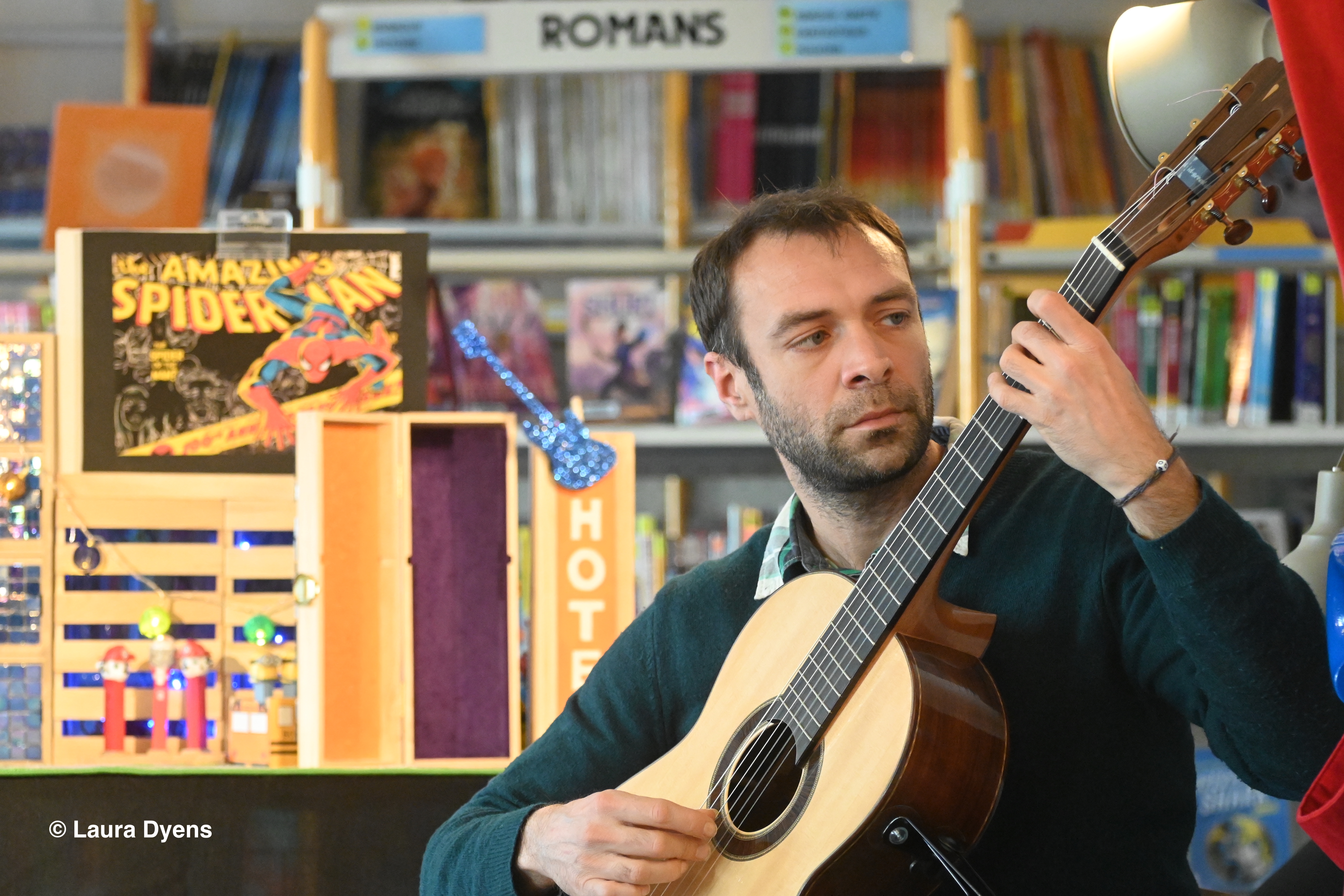 C’était l’occasion pour les enfants de mieux connaître la guitare et de découvrir toutes ses possibilités sonores : les trémolos, les glissandos, les vibratos, les harmoniques, les slaps, et même d’autres effets plus surprenant encore comme les percussions et les tambours. Ils ont pu reconnaitre les différents styles de musique jouées dans le spectacle comme le rock, le jazz, le blues, la bossa nova et le flamenco. Et à la fin du spectacle, les enfants ont été invités à découvrir les secrets du théâtre d’ombre en visitant l’arrière du décor !