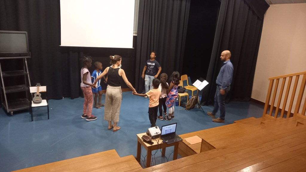 Tous les matins, de la semaine du 22 août, (sauf samedi bien sur !) Chloé Breillot, cheffe de choeur Montreuilloise anime des ateliers de chant dans les Centres de Loisirs Anatole France et Romain Rolland à Montreuil ! (93)