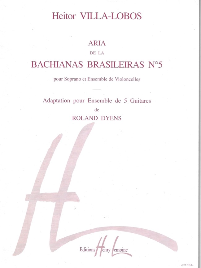 « Aria, extracted from Bachianas Brasileiras No. 5 by H. Villa-Lobos. Exactly the opposite approach of Ville d’Avril here, with this sumptuous Aria, extracted from Villa-Lobos’s series of nine Bachianas Brasileiras (and a true Brazilian anthem), because it was first through a complete transcription of the original work that my work began, and not the other way around. And while this transcription was relatively easy to realize, I must confess how difficult it was later to write its demanding adaptation for solo guitar. Needless to enumerate, I believe, the reasons for the magnitude of the task are contained solely in the challenge assigned, a bit crazy I admit. But for an instrument like the guitar, the art of arrangement (or adaptation) often bordering on a form of ‘sacrifice,’ may I at least wish that the present version of this mythical aria never evokes for you the sacrifice of art. » Roland Dyens