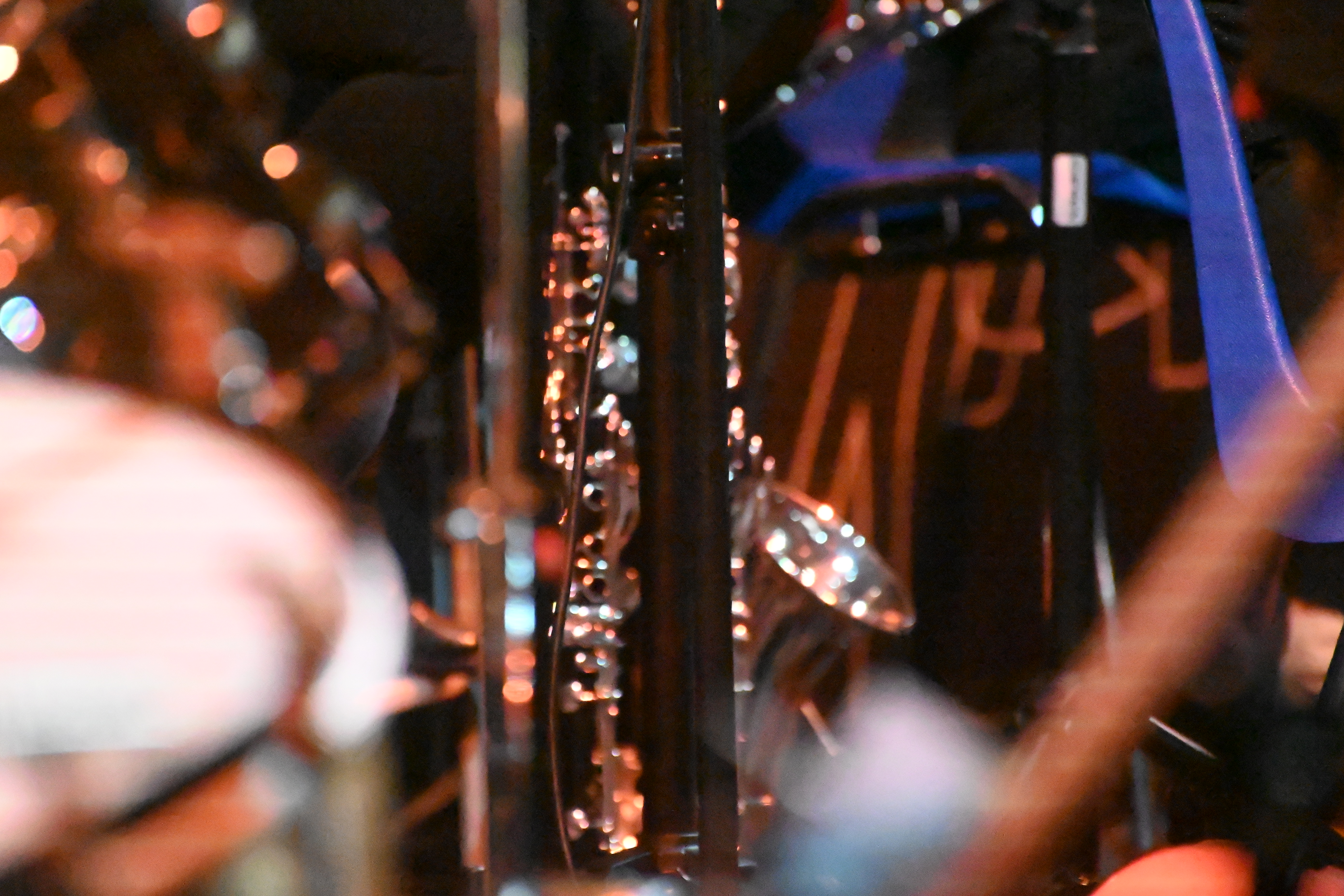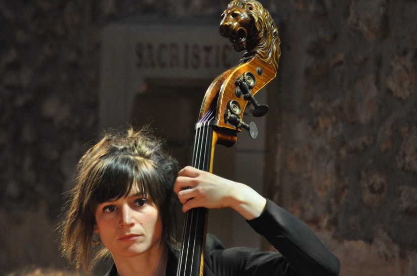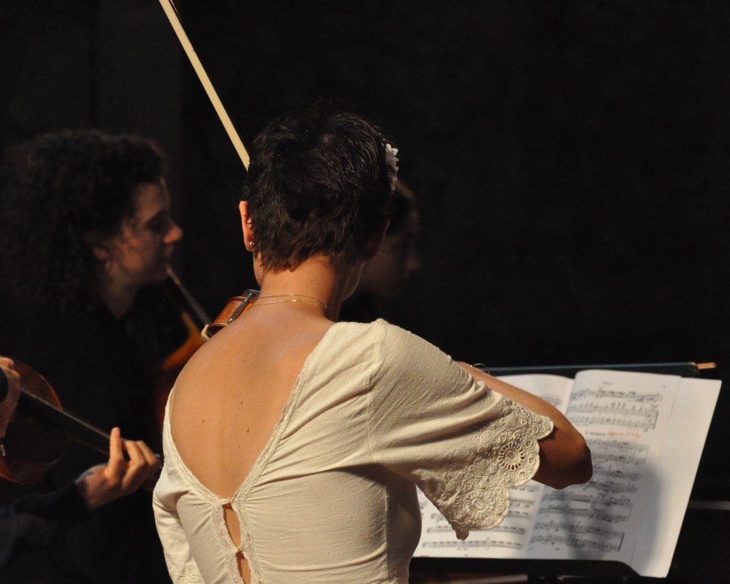 Et la blague de la soirée : Interruption du concert pour cause de partition envolée par le vent ! Anne Mousserion a réagi très promptement en sautant de la scène pour récupérer la partition volante et la fixer avec triples pinces à linges !