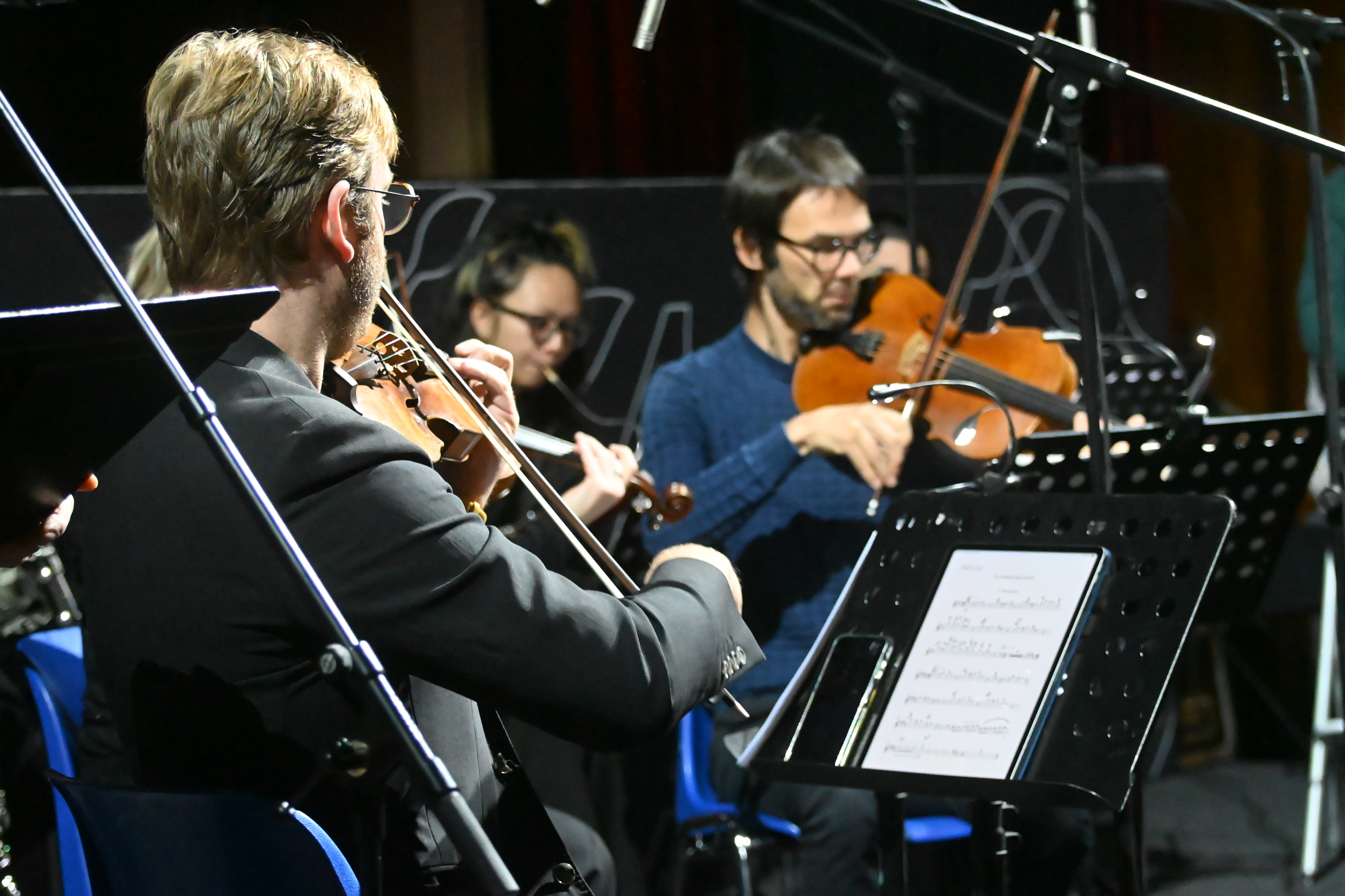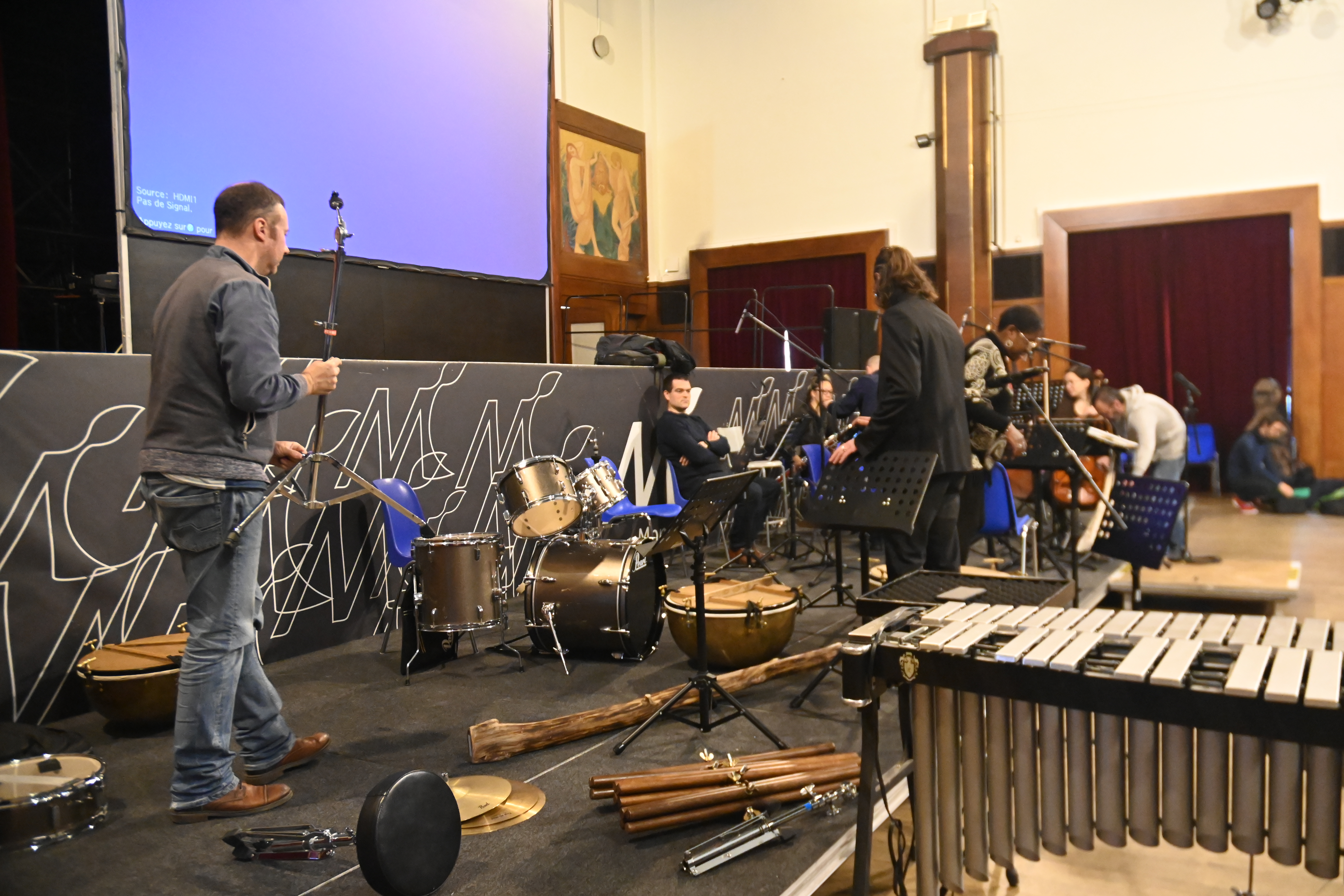 Voyage à travers l’Orchestre, de l’ensemble Denote, dirigé par Mathieu Braud, au Festival Marmoe le 27 novembre 2022 dans la Salle des Fêtes de l’Hotel de Ville à Montreuil. ©Joseph Banderet pour LE MONTREUILLOIS