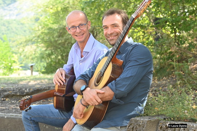 Leur duo s’est formé autour de la musique du compositeur Roland Dyens dont ils interprètent avec poésie et brio de nombreuses compositions et arrangements parmi lesquelles : Capricornes, la Saudade N°3, Thème Félin, Djembe, Oscarina (Pixinguinha), la Valse des Loges…. Des compositions de grands noms de la guitare comme Tarréga, Barrios, Sor mais aussi de Kalampalikis viennent compléter ce programme plein de soleil à l’image de ces excellents interprètes.