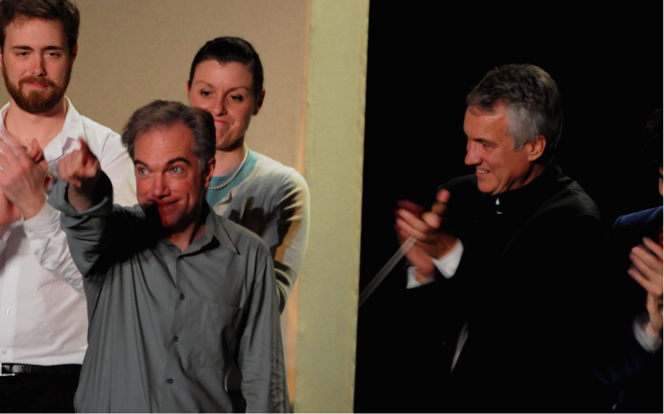 Yves Coudray pendant les saluts d’un spectacle